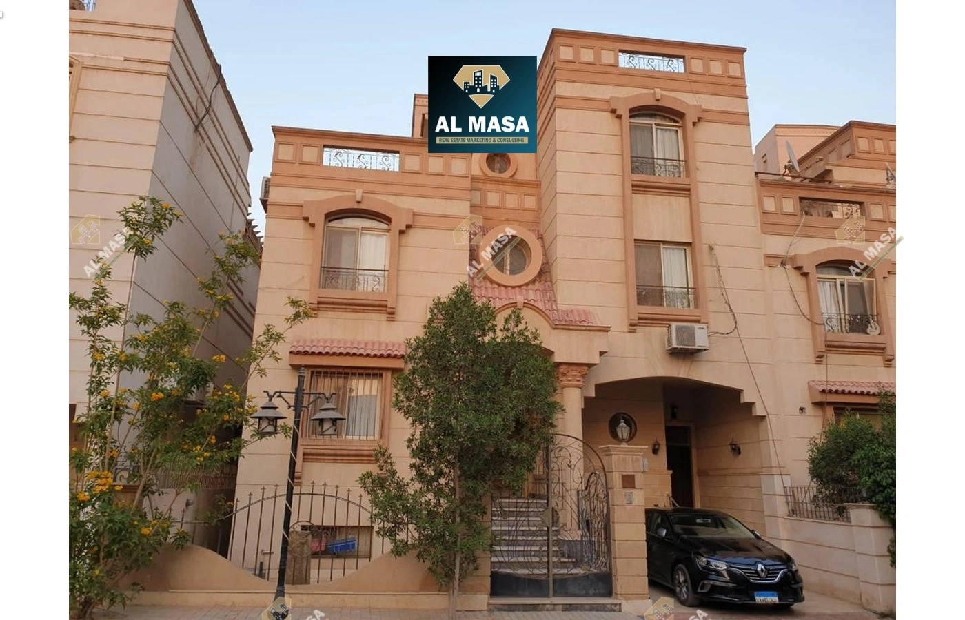 مكونه من 3 أدوار و روف كبير به جزء برجوله و بازمنت مرتفع يطل على حديقه ( البازمنت مثل الدور العادى ) تم حفر الحديقه إلى مستوى البازمنت لأحياء البازمنت و أصبح مثل باقى الأدوار