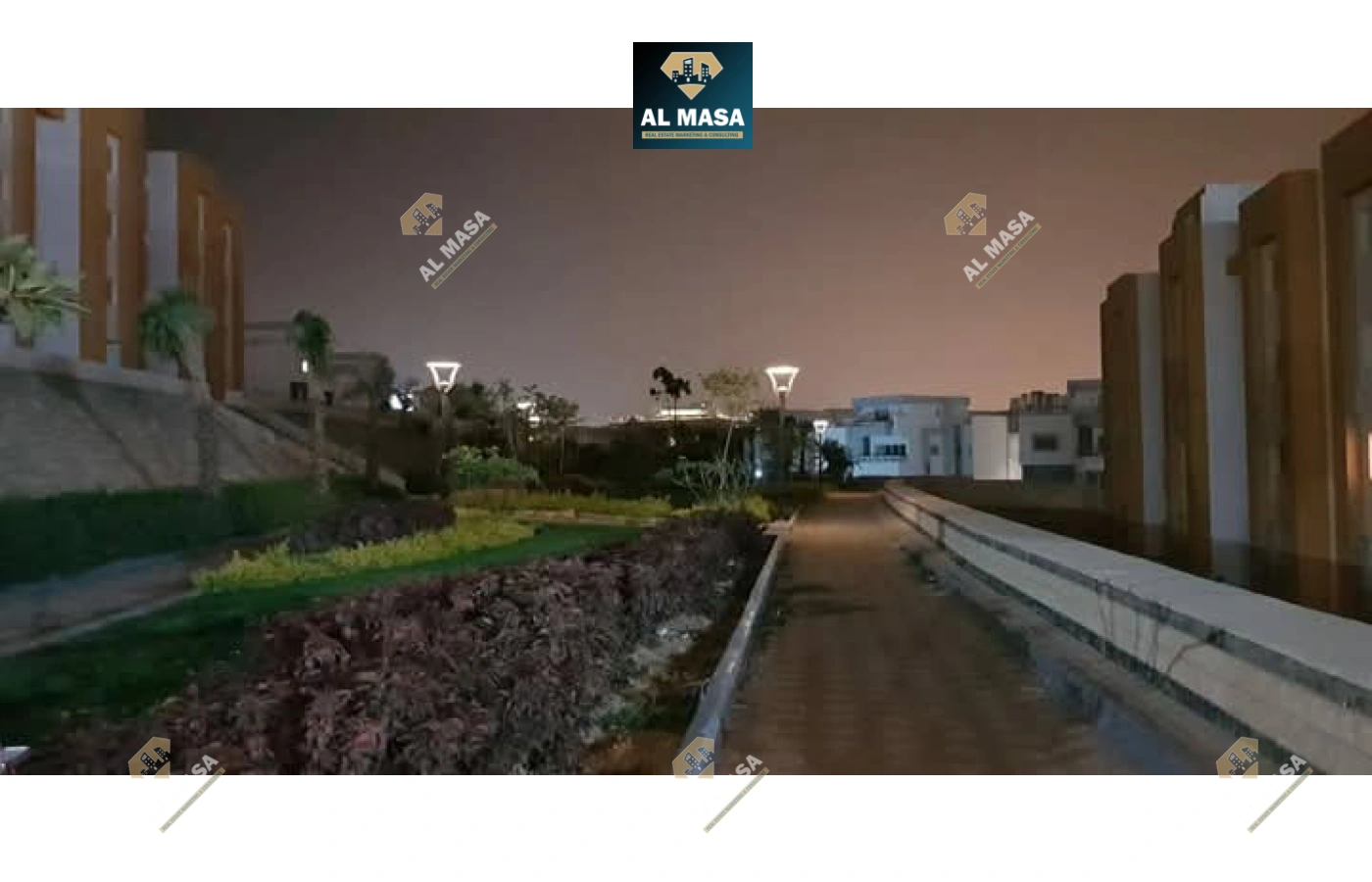 -تراس بالارضي اعلى سقف الجراج بمساحه ٦٠ م٢ متصل بالفيلا والحديقه.